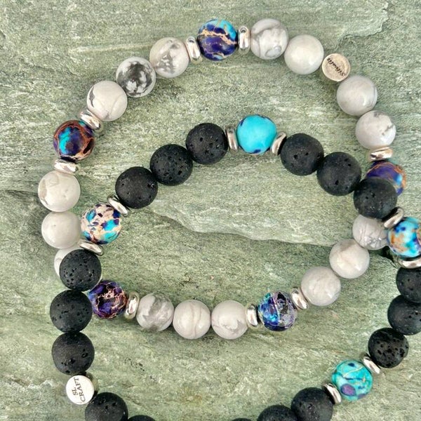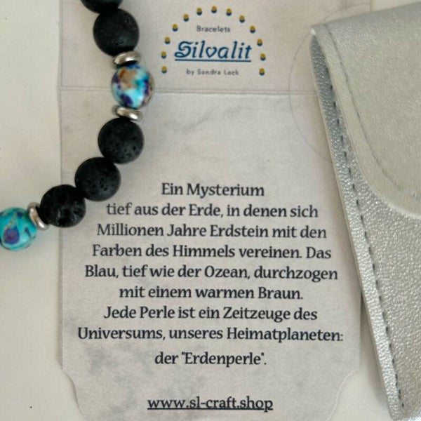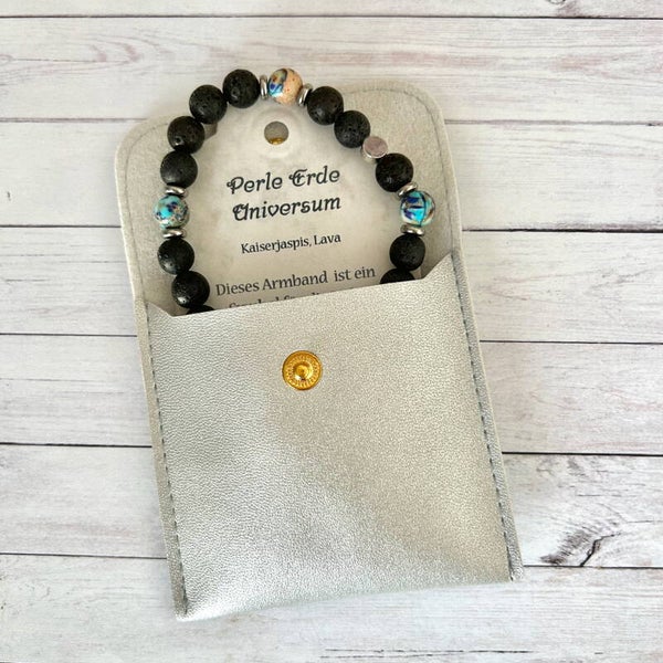 Edelsteinstein Armband Perle Erde, Kaiserjaspis blau bunt - Lava