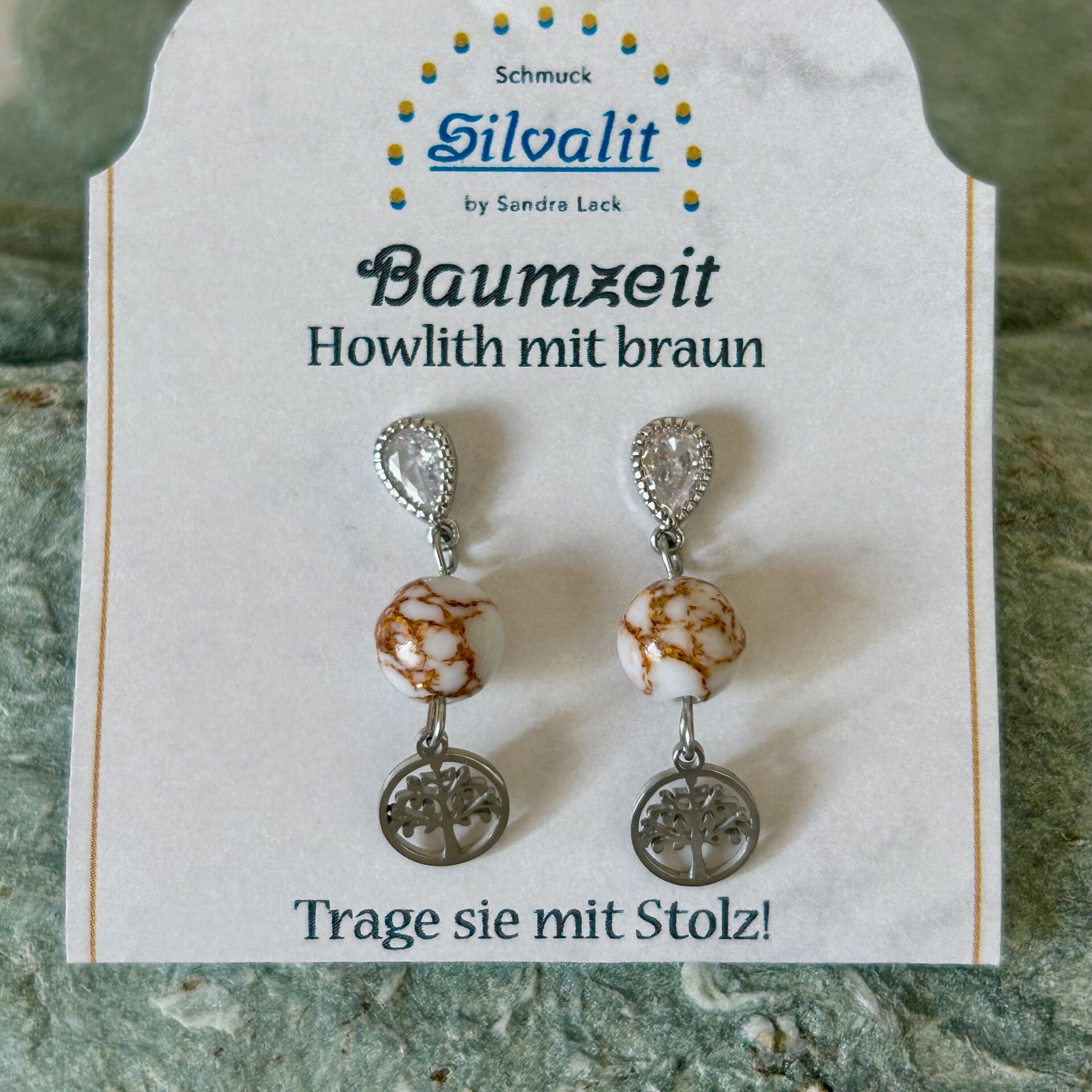 Ohrstecker Strass, Howlith mit braun