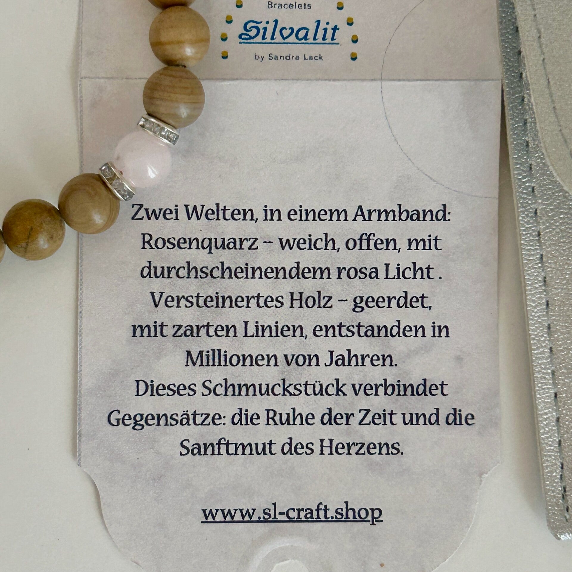 Edelstein Armband Sympathie, Holz Jaspis - Rosenquarz